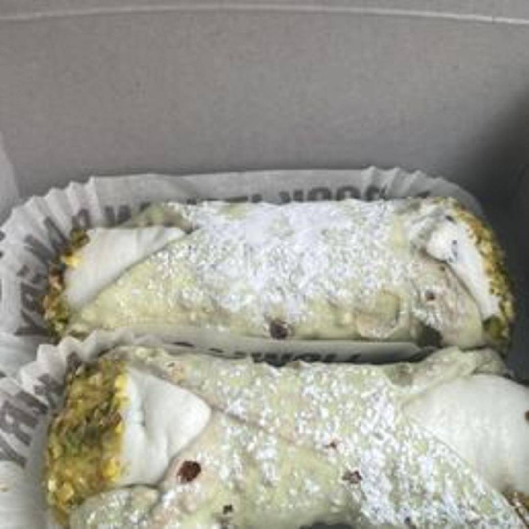 A crisp, fried pastry shell filled with a sweet, creamy ricotta filling, flavored with pistachios and often garnished with chopped pistachios and powdered sugar. A classic Italian dessert.
