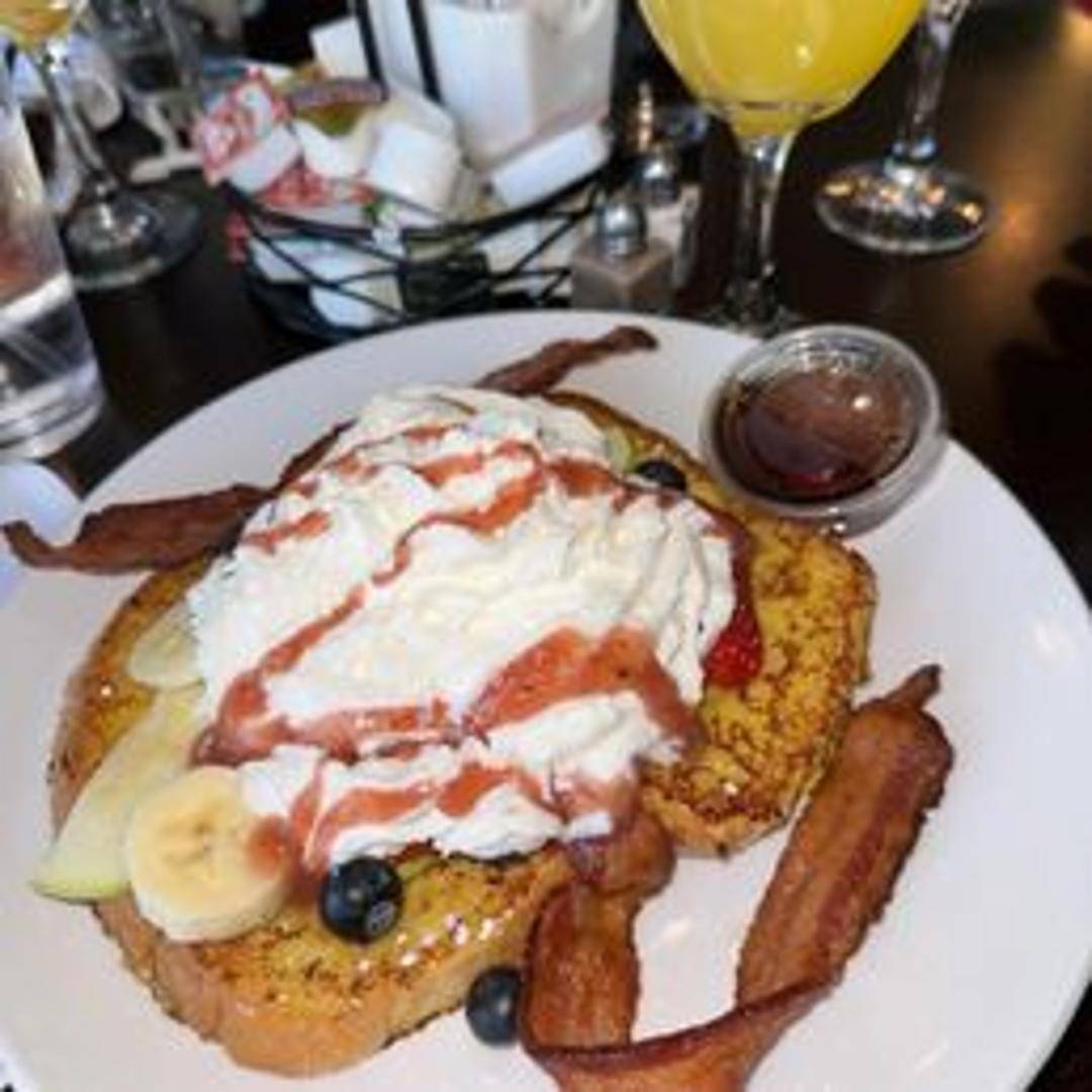 Thick-cut brioche bread soaked in a rich custard and caramelized to a crisp, golden brown. Topped with fresh berries and a dusting of powdered sugar. Served with maple syrup.