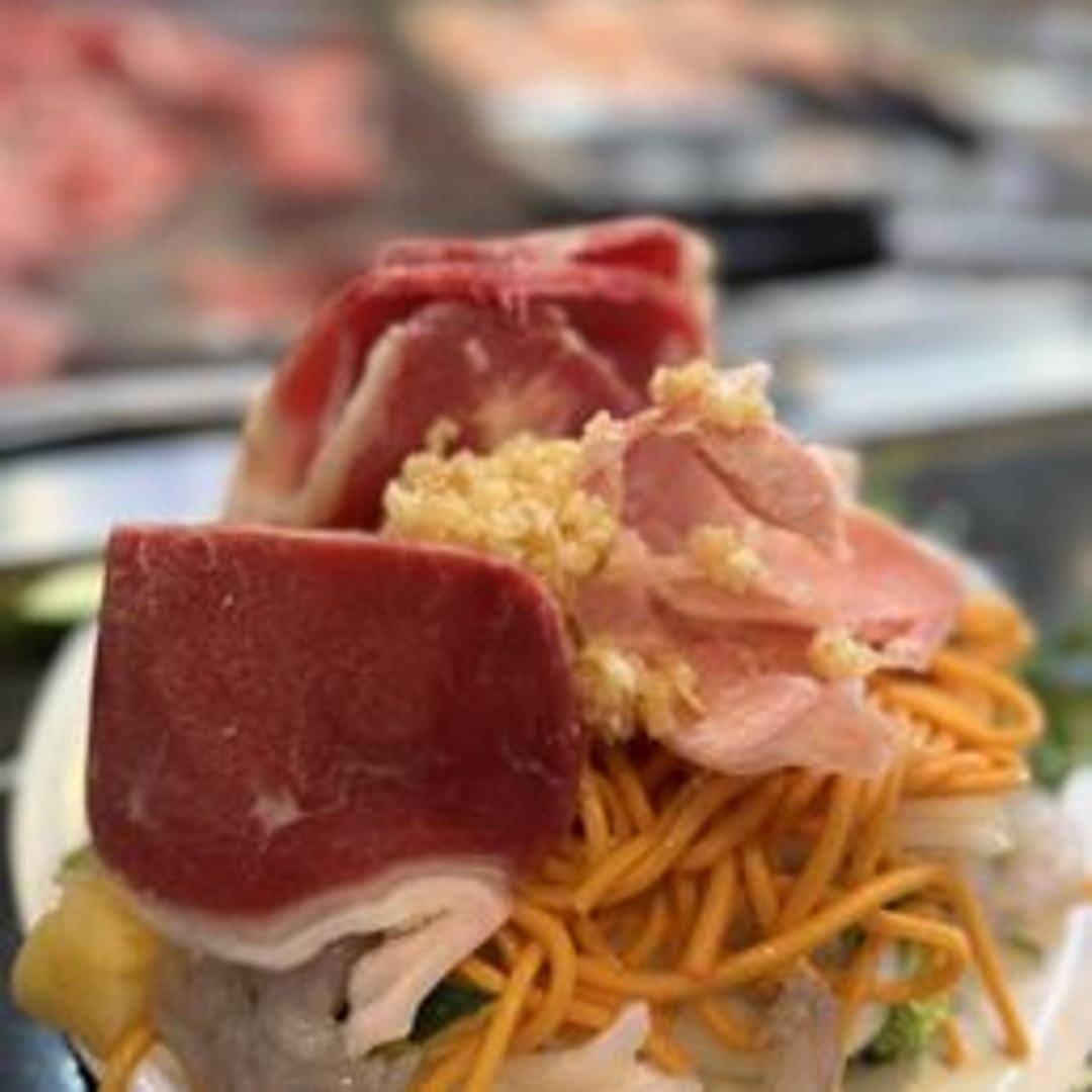 A customizable stir-fry where you select your own meats, vegetables, noodles, and sauces, then have it cooked on a large, round griddle.