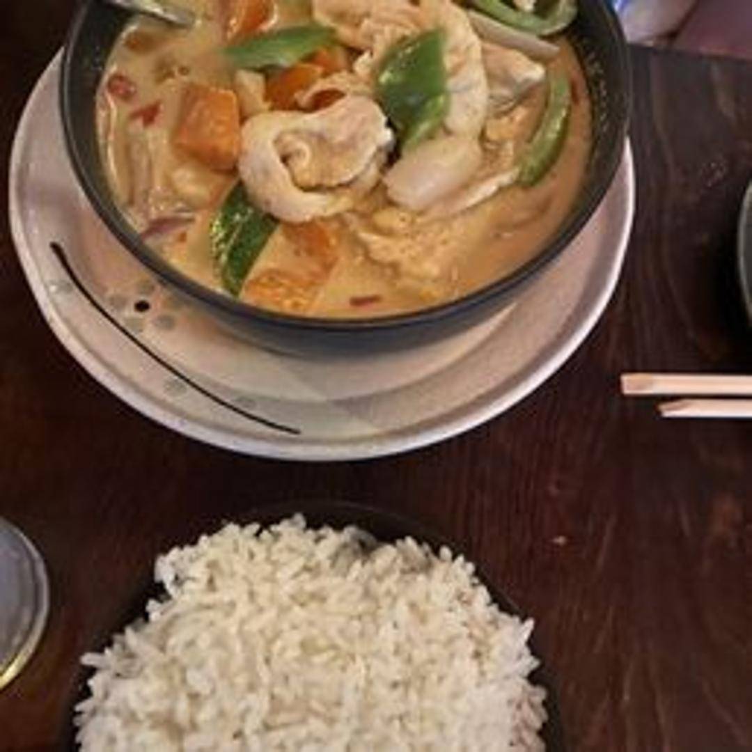 A rich and creamy Thai curry made with Panang curry paste, coconut milk, and typically a choice of protein and vegetables. The curry paste features flavors of red chili peppers, lemongrass, galangal, kaffir lime leaves, and coriander.
