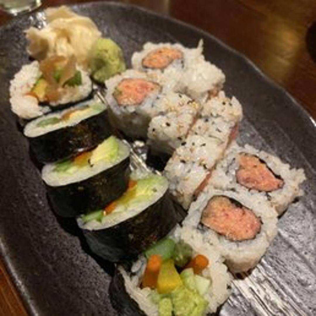 A sushi roll filled with tuna mixed with spicy mayonnaise or sriracha sauce. Rolled in sushi rice and nori seaweed.
