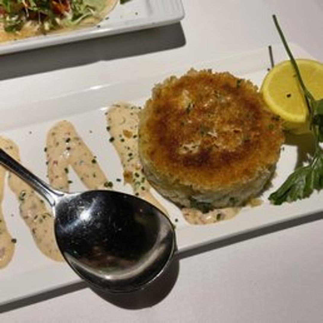 A generous portion of jumbo lump crab meat, lightly bound with savory seasonings and pan-seared to a golden brown. Served with a remoulade sauce for a tangy and creamy complement to the sweet crab.