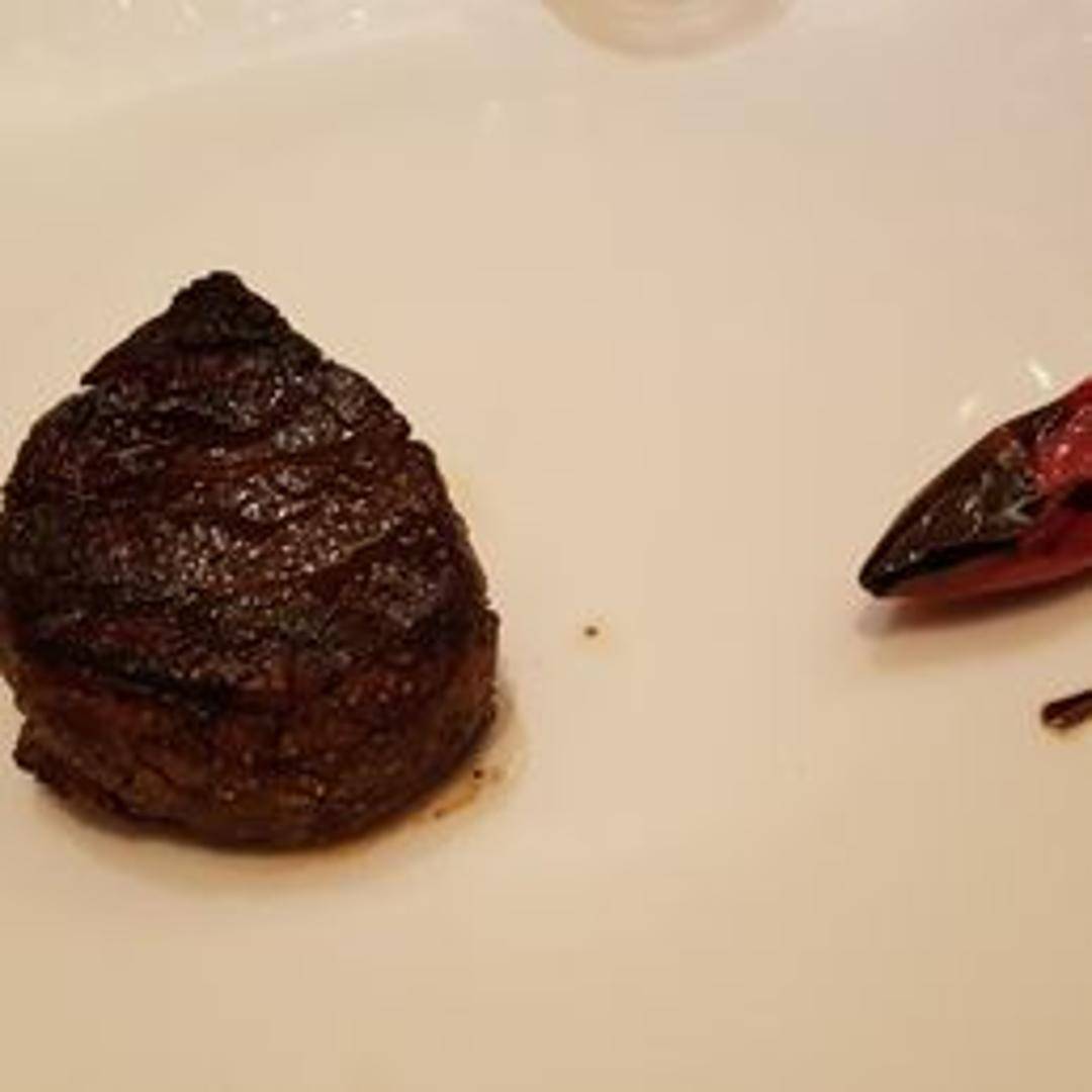 A tender and lean cut of beef, typically grilled or pan-seared to the desired level of doneness. Served with classic steakhouse accompaniments like mashed potatoes, asparagus, and a rich sauce (such as Béarnaise or red wine reduction).