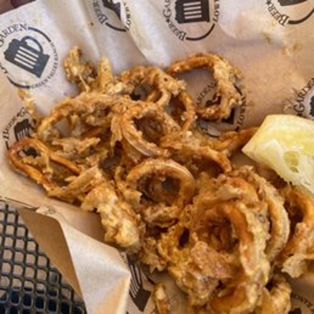 Tender rings of squid, lightly battered and fried to a golden crisp. Served with a dipping sauce, such as marinara, aioli, or sweet chili.