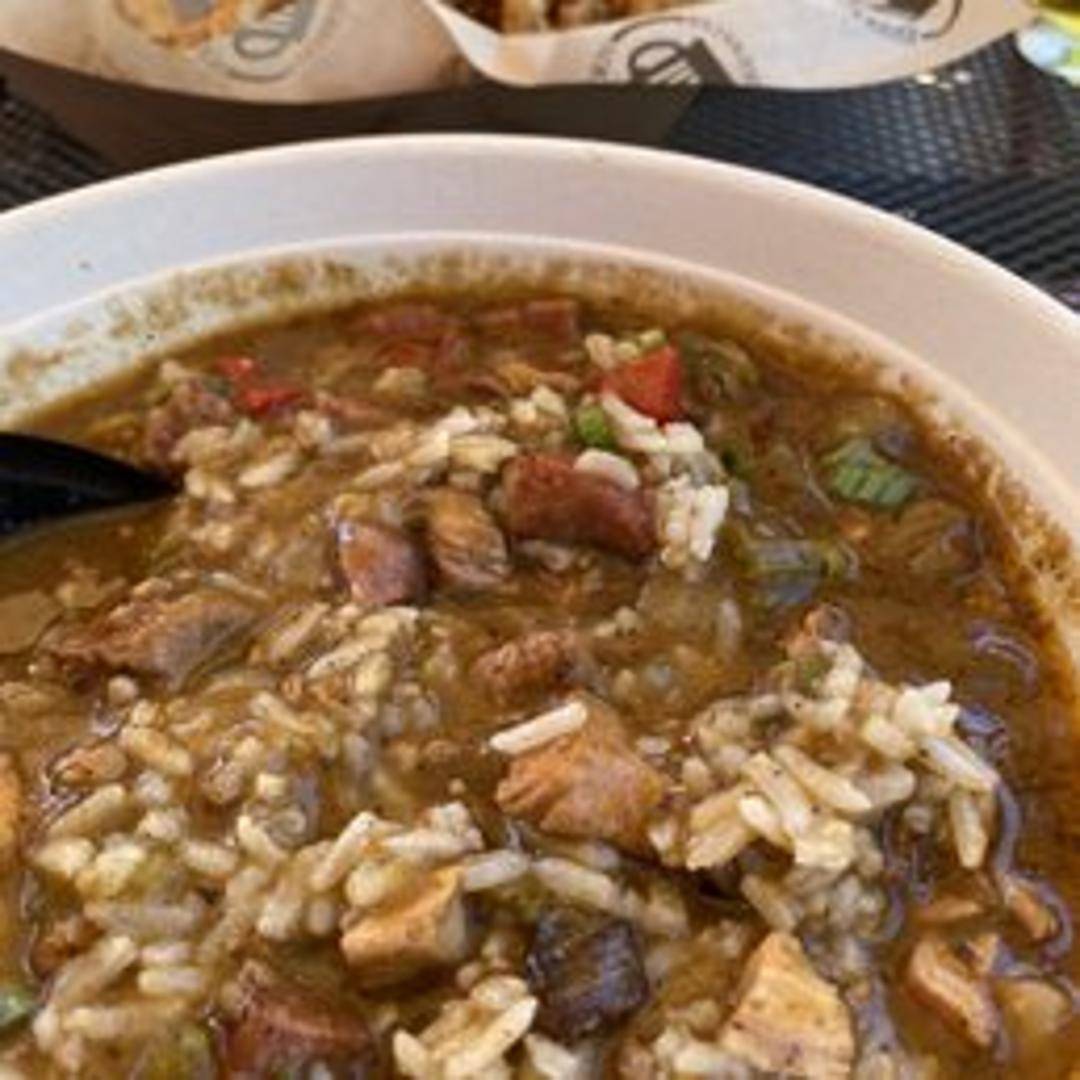 A rich and flavorful stew featuring a blend of Creole and Cajun spices, often with a variety of meats (such as chicken, sausage, and seafood) and vegetables like okra, bell peppers, and celery. Served over rice.