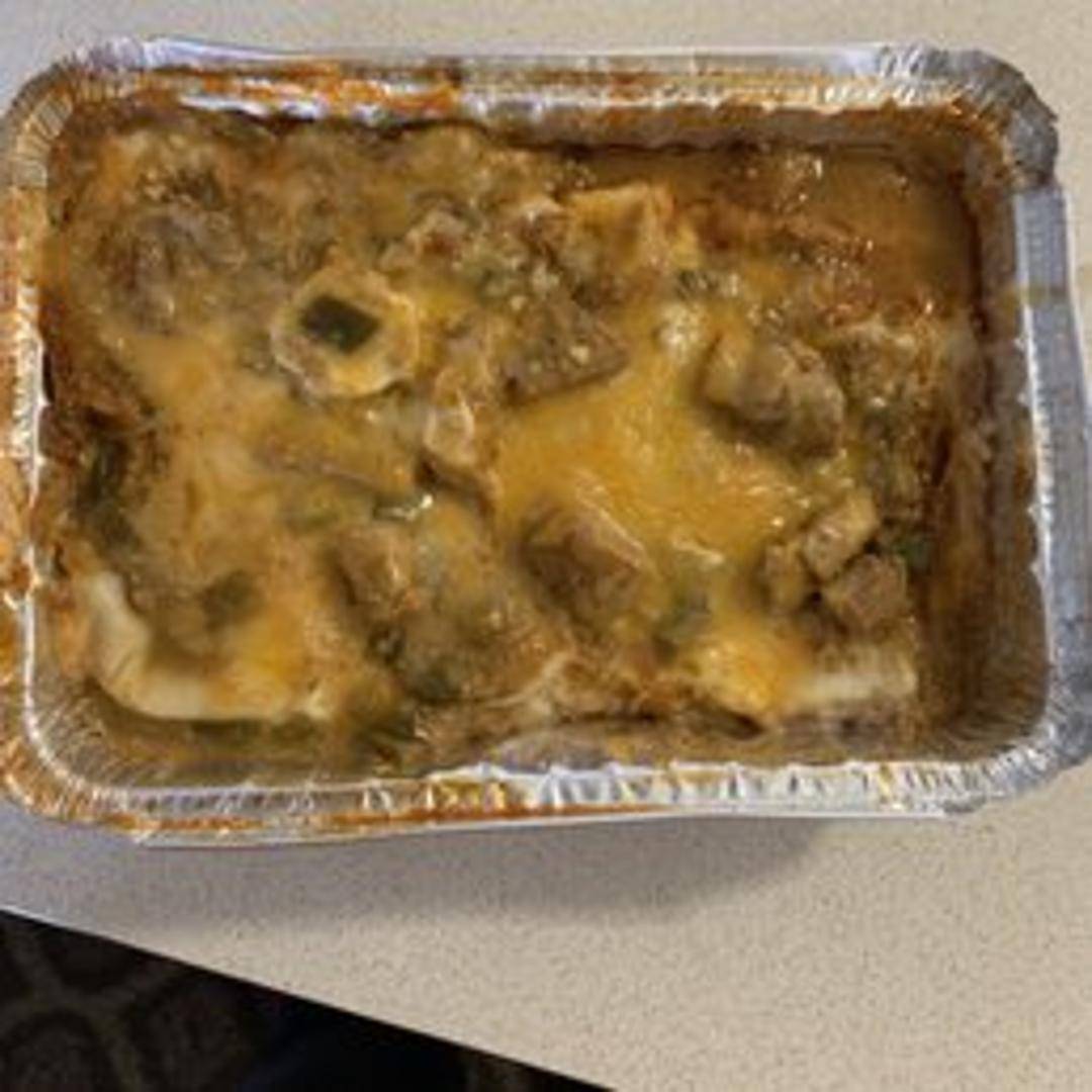 A large flour tortilla filled with your choice of meat (chicken, beef, or carnitas), rice, beans, cheese, lettuce, and pico de gallo. Smothered in your choice of green chile or mild red sauce.
