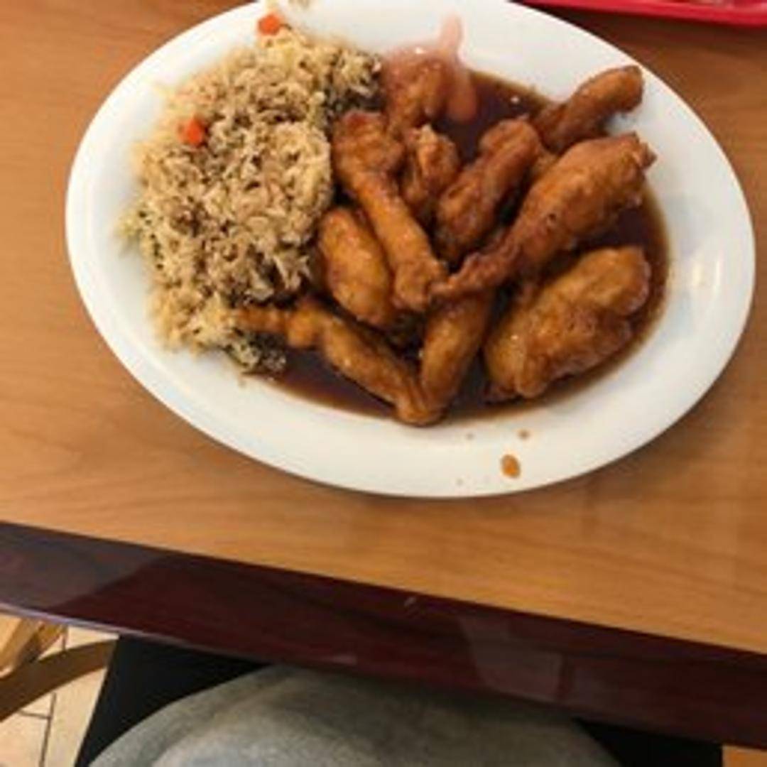 Tender pieces of lightly battered chicken, wok-tossed in a sweet and tangy orange-flavored sauce. Served with a side of steamed rice.