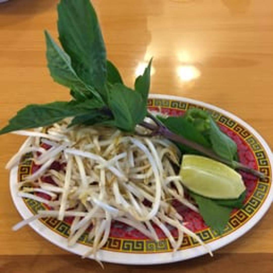 Fresh, aromatic Thai basil leaves. Characterized by its licorice-like flavor and vibrant green color. Often used as a garnish or added to dishes for a burst of freshness.