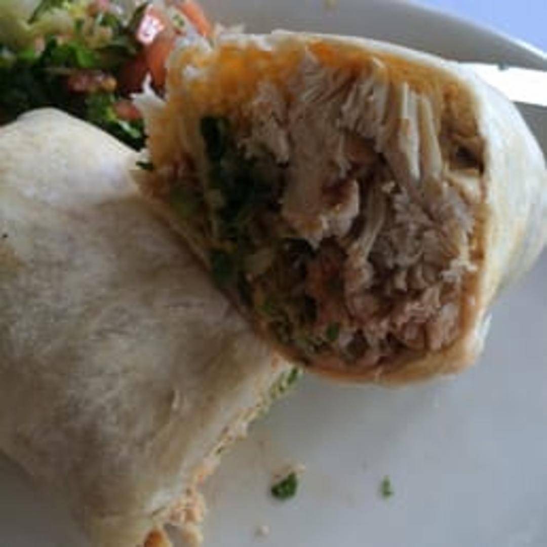 Flour tortilla filled with seasoned chicken, rice, beans, cheese, and your choice of salsa and toppings.