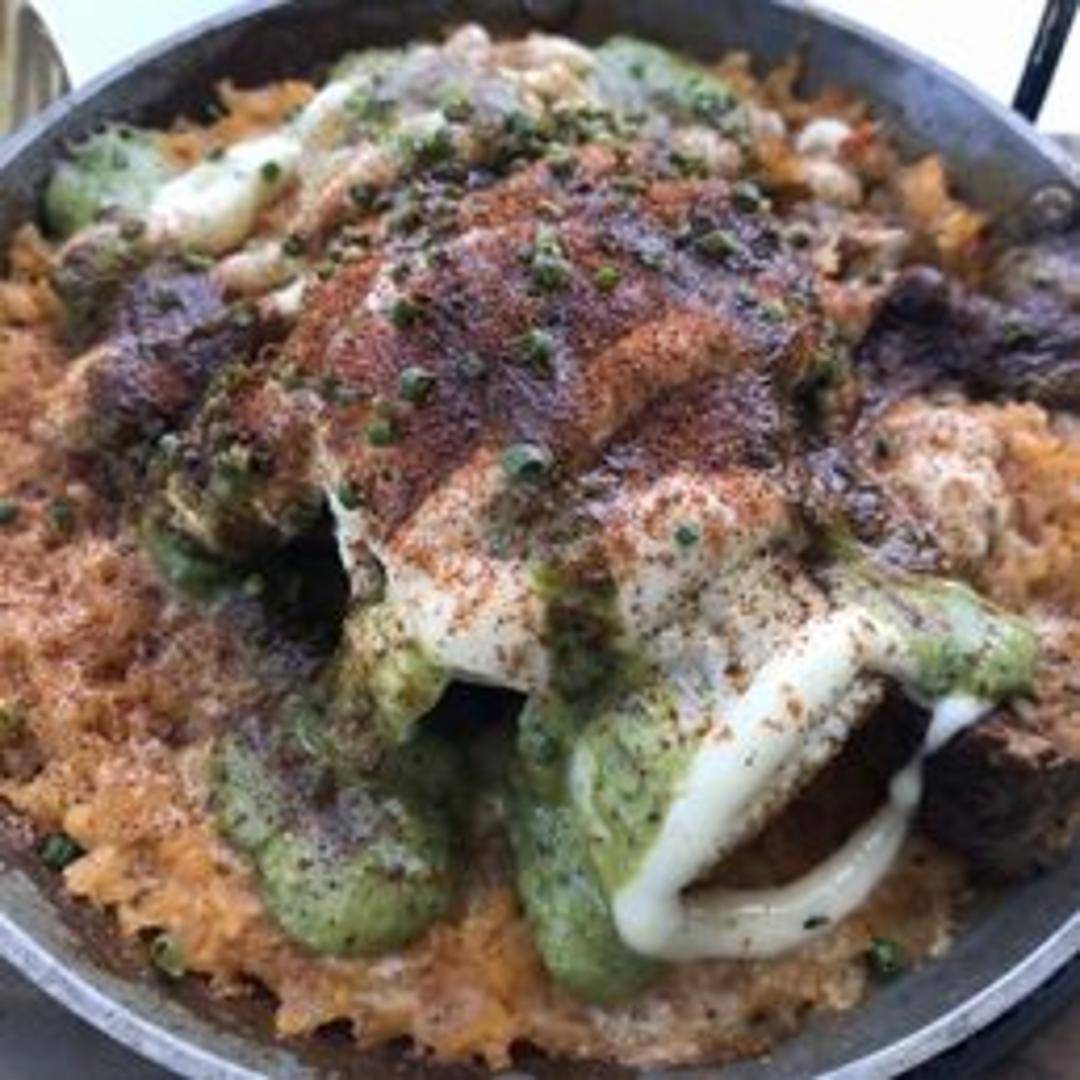 Traditional Spanish rice dish with saffron, chorizo, and other savory sausages.