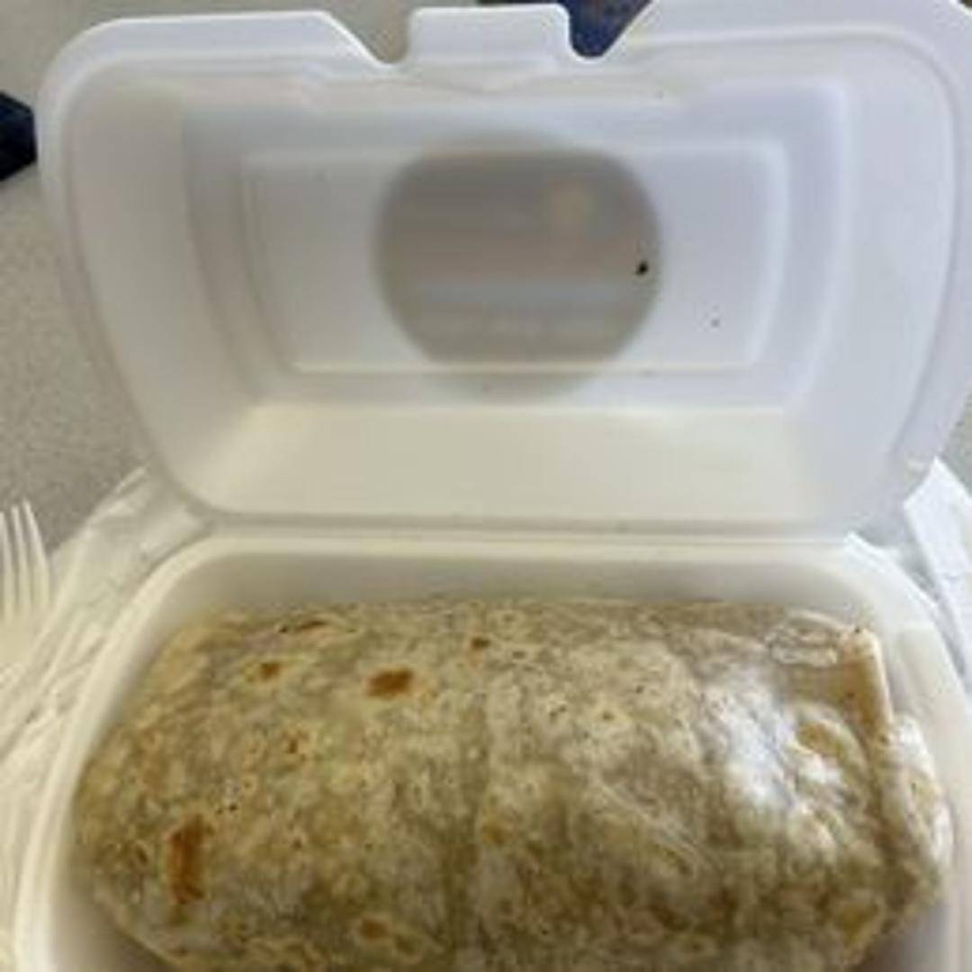 A large flour tortilla filled with your choice of meat (steak, chicken, ground beef, or carnitas), rice, beans, lettuce, tomato, onion, sour cream, and guacamole.