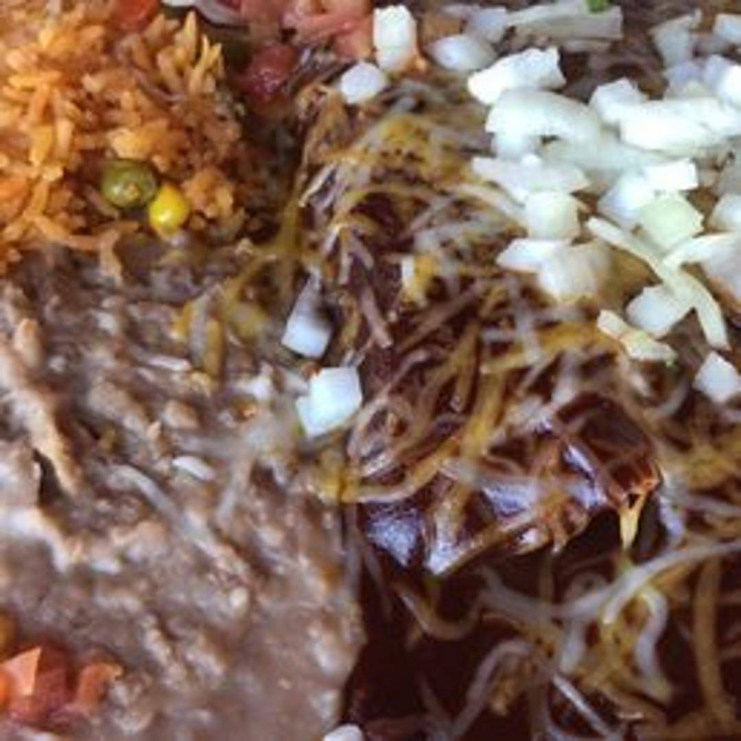 Chicken simmered in a complex and flavorful mole sauce, made from a blend of chili peppers, spices, chocolate, and other ingredients. Served with rice and your choice of tortillas.