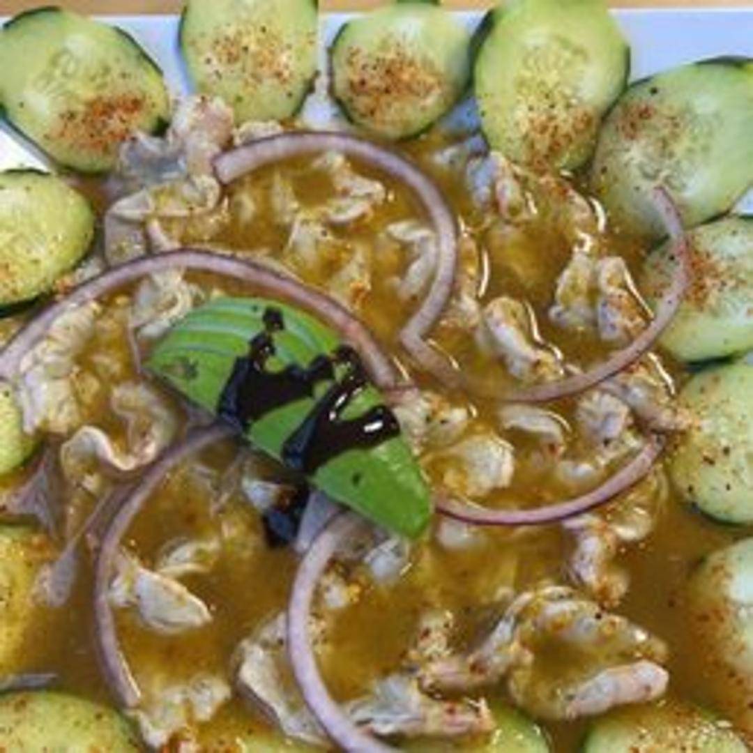 Shrimp marinated in a spicy chili lime broth, often with cucumber, red onion, and cilantro. Served chilled.