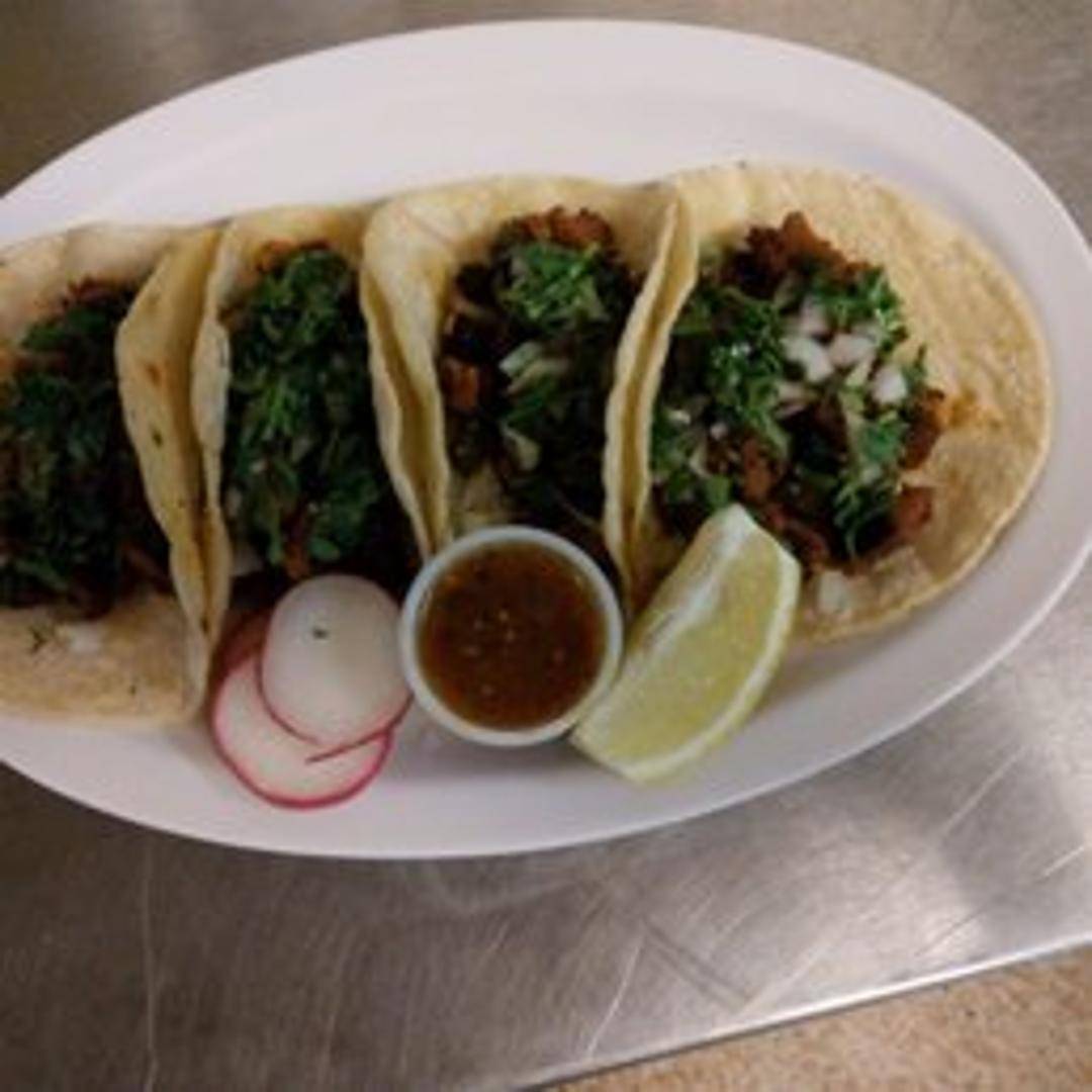 Thinly sliced marinated pork, cooked on a vertical spit, often served with pineapple, onions, and cilantro. The marinade typically includes achiote, spices, and citrus juices.