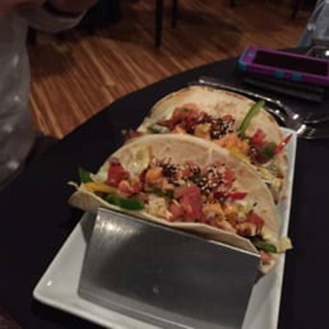 Fresh and vibrant tacos featuring perfectly seared tuna, nestled in warm tortillas with crisp cabbage slaw, a zesty avocado crema, and a hint of fresh cilantro, delivering a delightful balance of textures and flavors.
