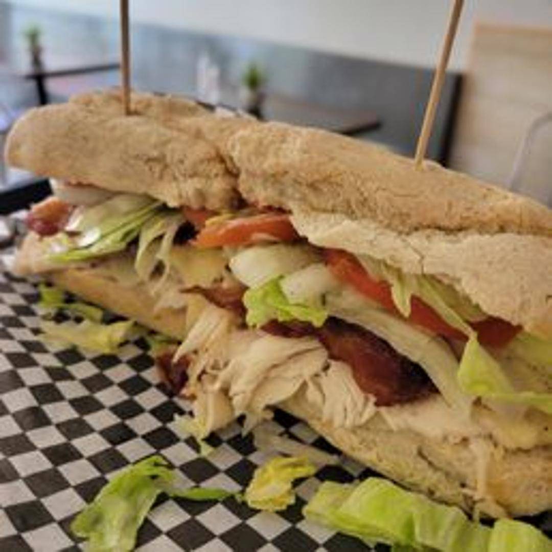 Sliced turkey breast piled high with spicy peppers, cheese, lettuce, tomato, and a zesty sauce on your choice of bread.