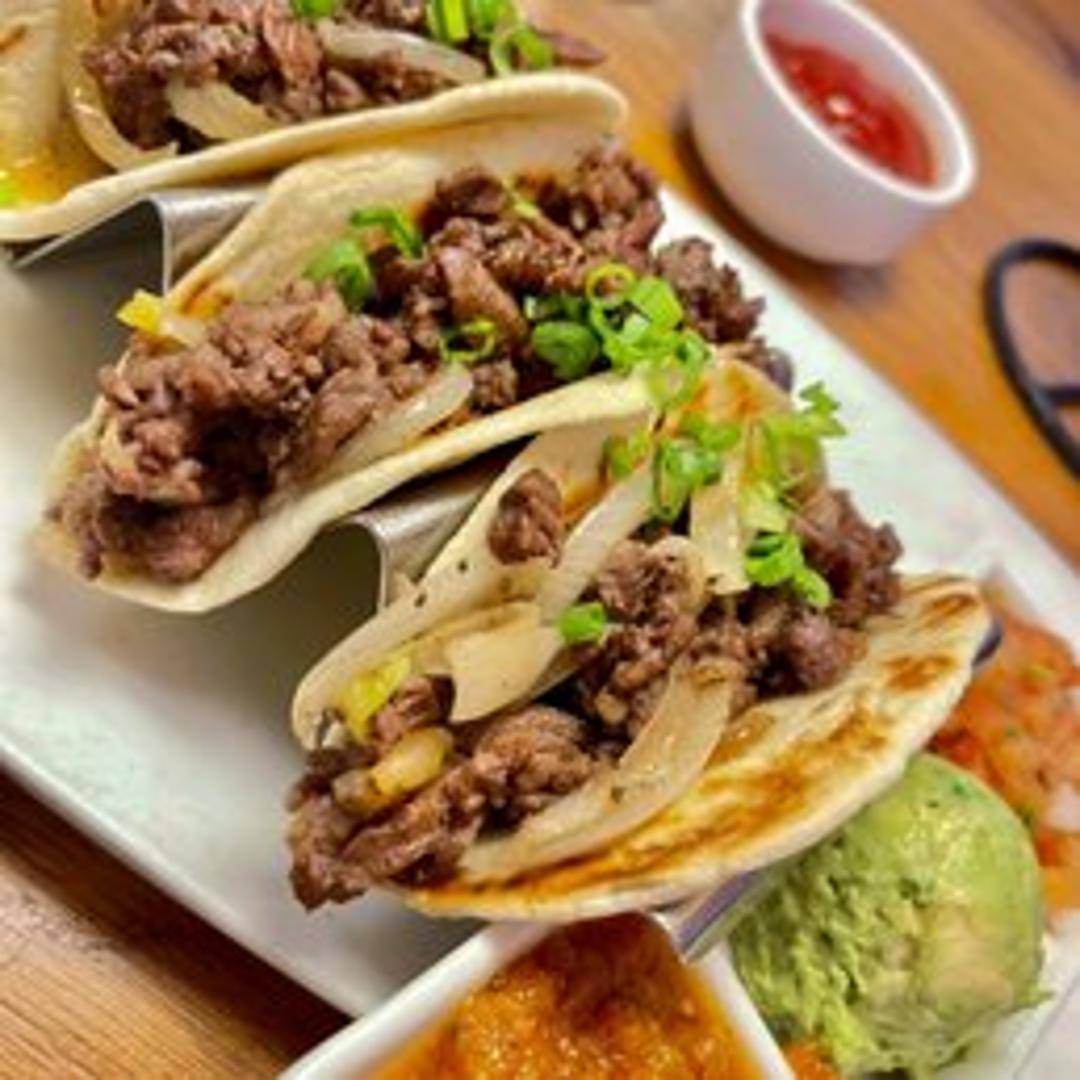 Grilled steak, diced and served in tortillas with various toppings such as salsa, guacamole, onions, and cilantro. Served with your choice of side.