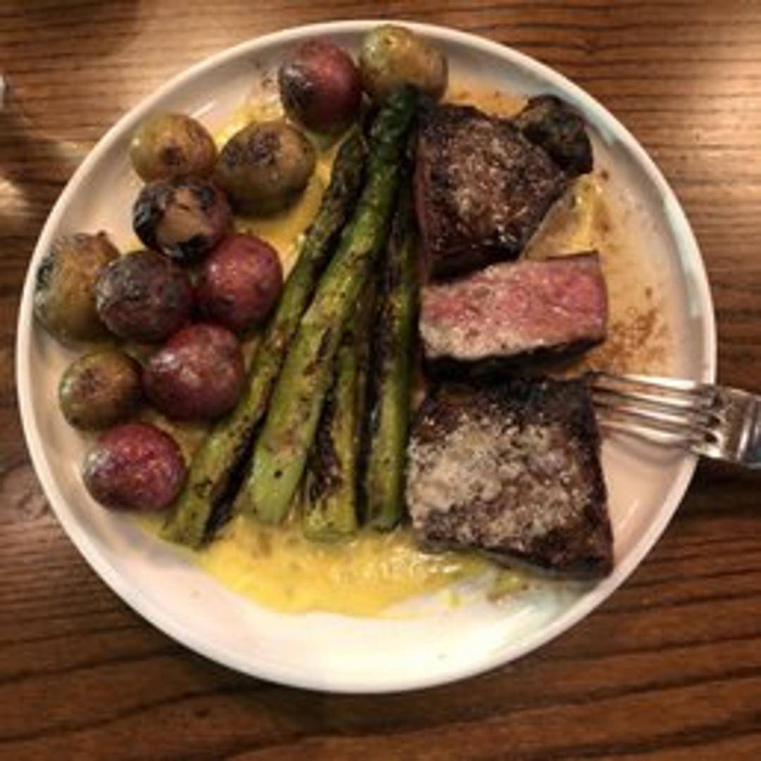 A perfectly aged New York Strip steak, expertly grilled to your desired temperature. Tender, flavorful, and a classic choice for steak lovers. Served with your choice of side.
