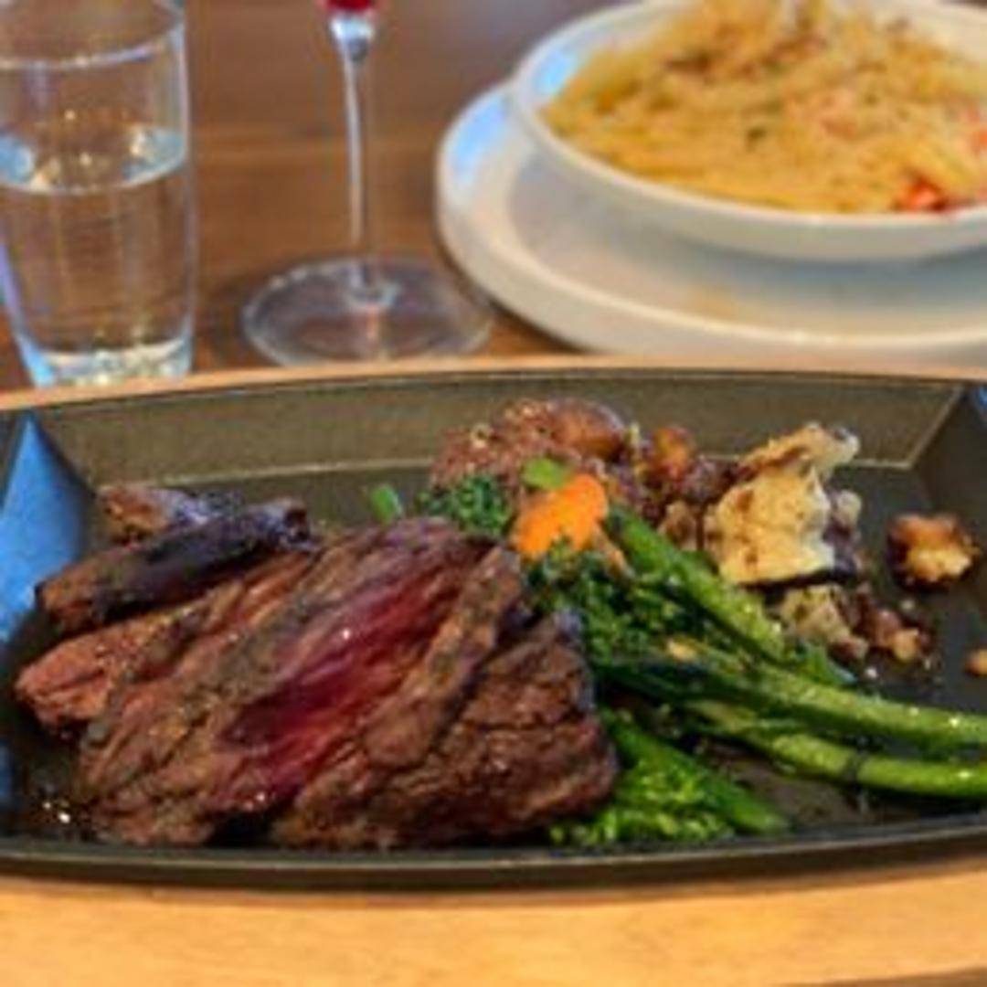 Grilled steak topped with a vibrant and herbaceous chimichurri sauce made with fresh parsley, cilantro, garlic, red wine vinegar, and olive oil. Served with your choice of two sides.