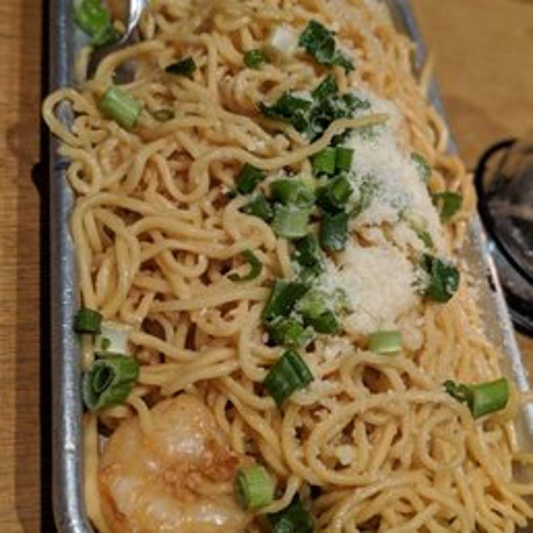 Silky, springy noodles generously tossed in a fragrant, savory garlic butter sauce. This beloved dish is renowned for its irresistible aromatic flavor, offering a comforting and highly satisfying culinary experience.