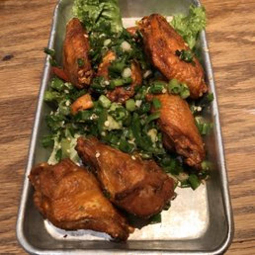 Experience a burst of flavor with our Crispy Garlic Jalapeno Chicken Wings. These six perfectly fried wings boast an irresistible crunch, a robust garlic kick, and a tantalizing hint of heat from fresh jalapenos, making for a thrilling appetizer.
