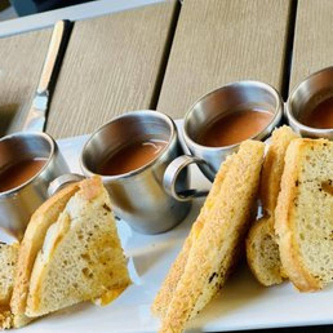 A delightful and elegant take on a classic comfort, these creamy tomato soup shooters are perfectly portioned for a savory start to your meal. Rich and velvety, they offer a burst of warmth and flavor in every sip.