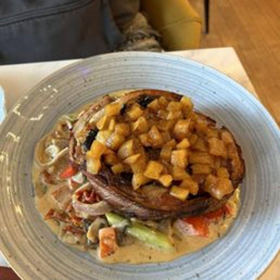 Savory, slow-cooked pork belly, pan-seared to crispy perfection and served as a steak. Expect rich, melt-in-your-mouth texture with a satisfyingly crisp exterior.