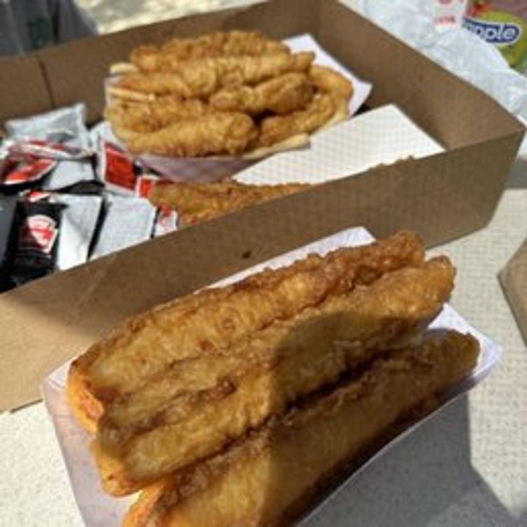 A generous portion of flaky, white cod, battered and deep-fried to golden perfection, served alongside a heap of thick-cut, crispy chips (fries). Often enjoyed with salt, vinegar, and tartar sauce.