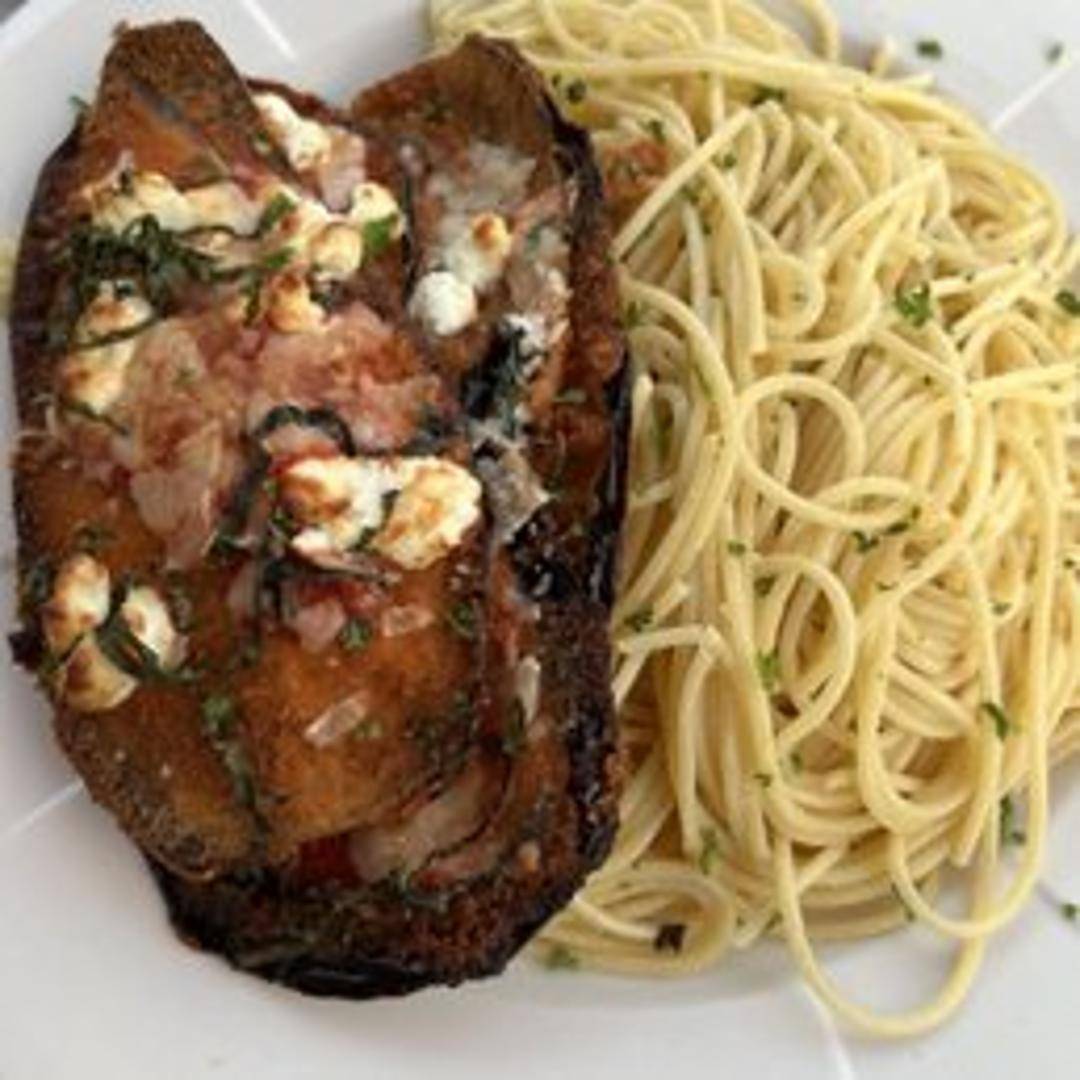 Layers of lightly breaded and fried eggplant, fresh mozzarella, basil, and tomato sauce, baked to perfection and drizzled with balsamic glaze.