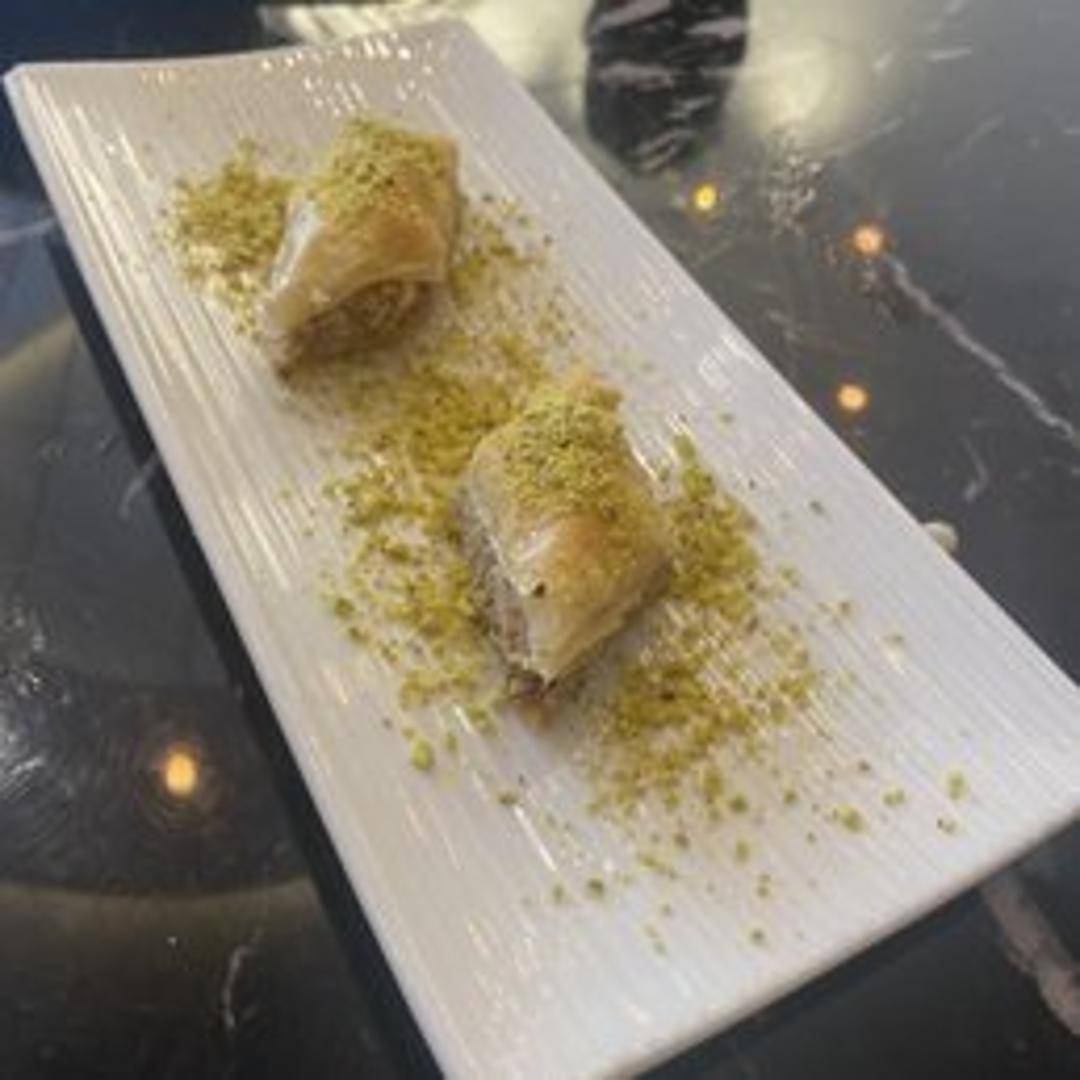 A rich, sweet pastry made of layers of filo dough filled with chopped nuts and sweetened with syrup or honey. Features flaky layers and a delicious, nutty filling, drizzled with a sweet, aromatic syrup.