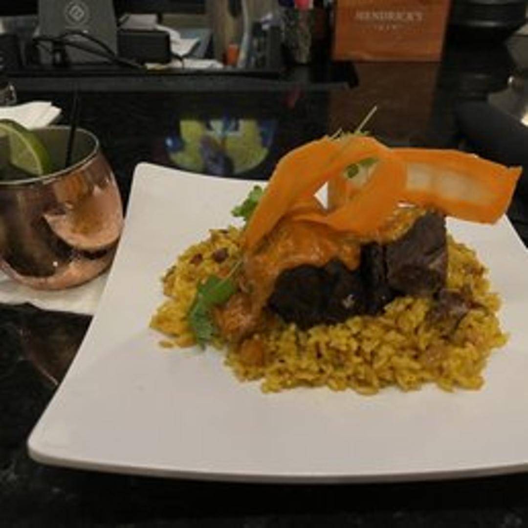 Tender beer-braised short ribs simmered in a fragrant and flavorful masala sauce. Served with basmati rice and naan bread.