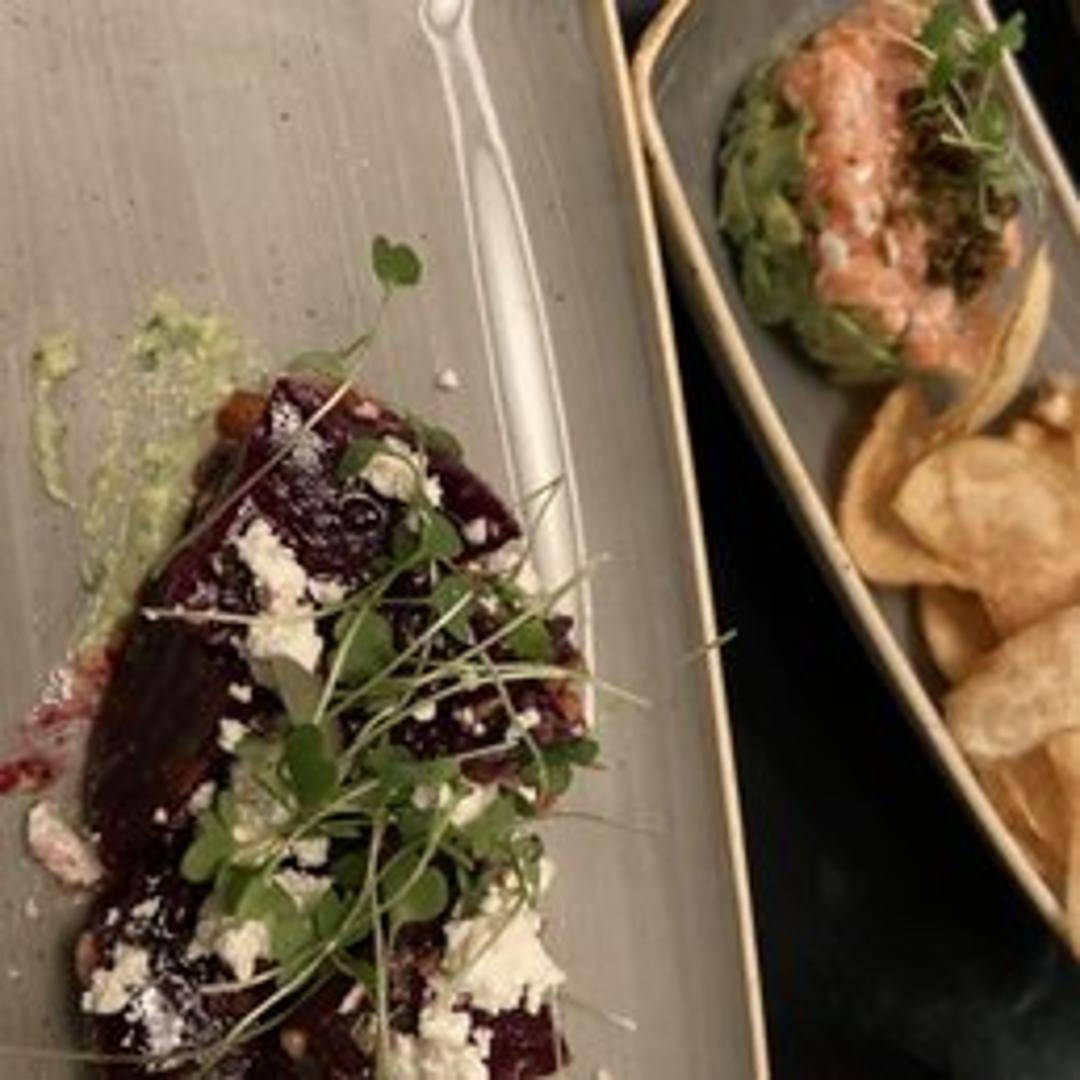 Roasted beets tossed with mixed greens, crumbled goat cheese, candied walnuts, and a light vinaigrette dressing.