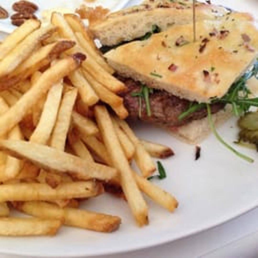 Ground lamb patty seasoned with herbs and spices, topped with feta cheese, tzatziki sauce, lettuce, and tomato on a toasted bun. Served with choice of side.