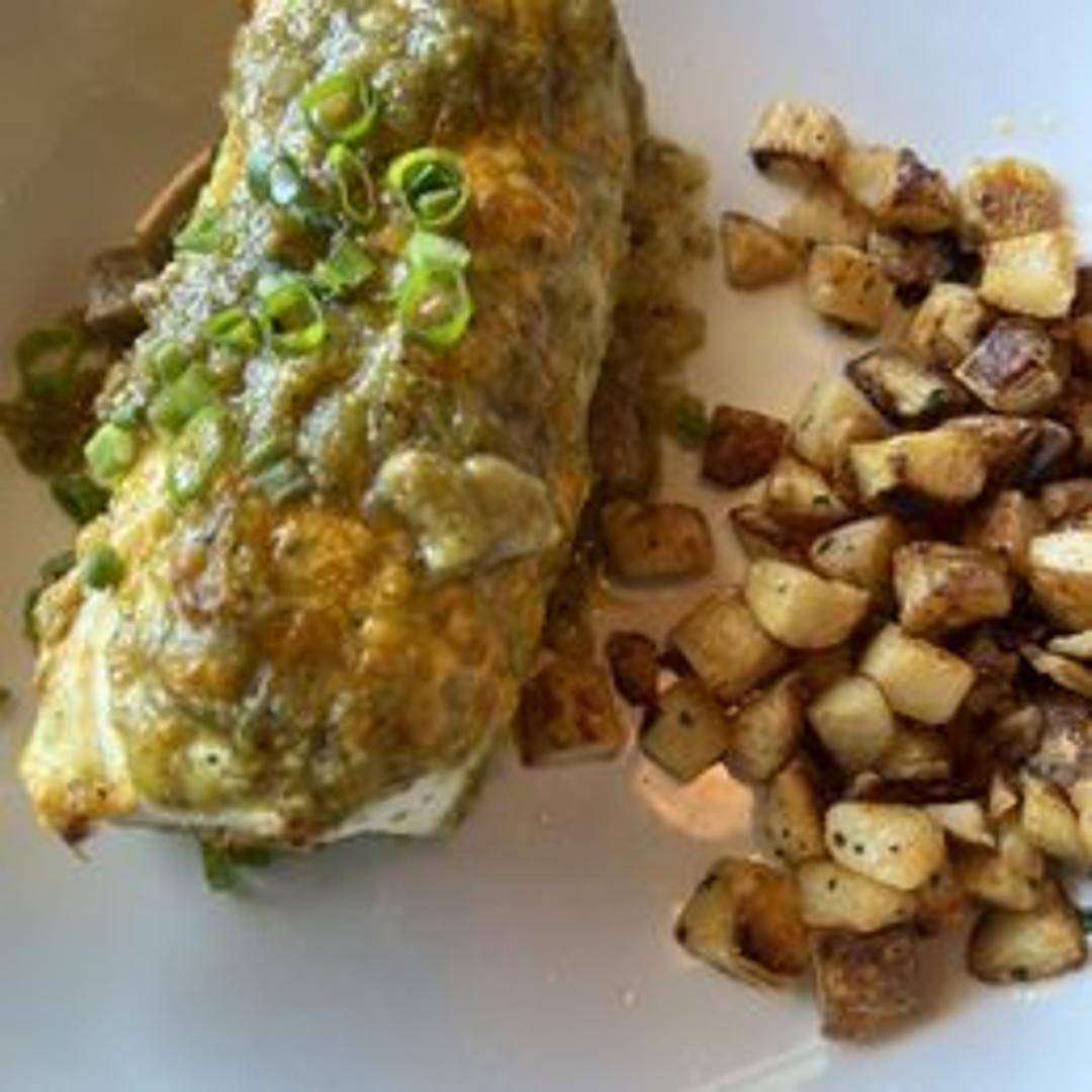 A hearty burrito filled with spicy chorizo, scrambled eggs, potatoes, cheese, and your choice of salsa. Perfect for breakfast or lunch.