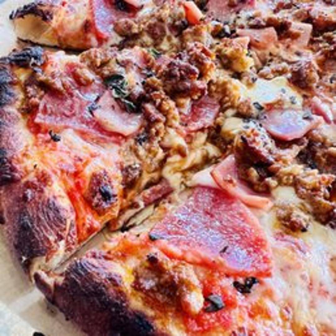 A pizza featuring specific toppings (details unavailable). Please inquire with your server about the ingredients and preparation of this pizza.