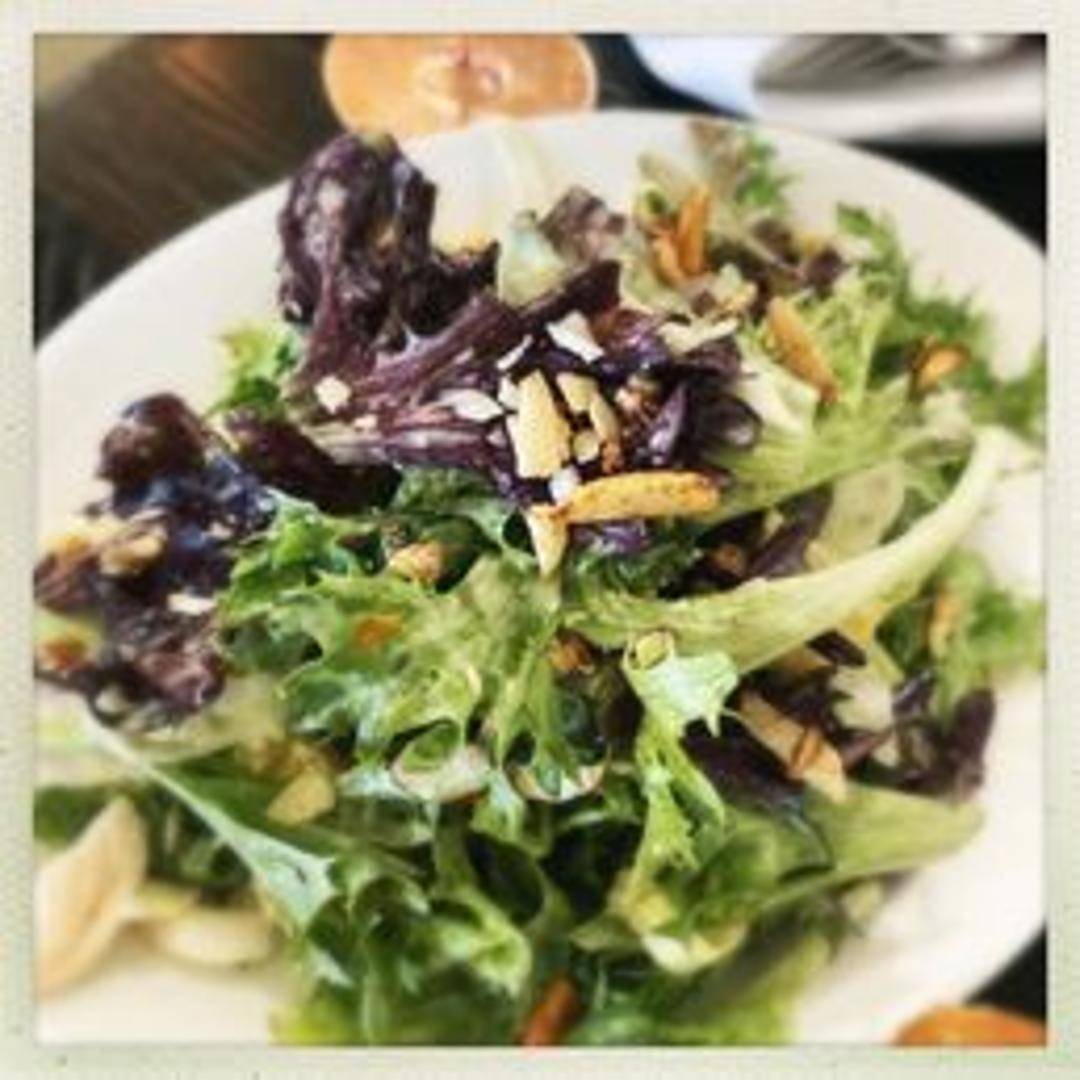 A fresh and vibrant salad featuring seasonal greens, crisp vegetables, and a light vinaigrette dressing. The specific ingredients may vary depending on the availability of fresh produce.