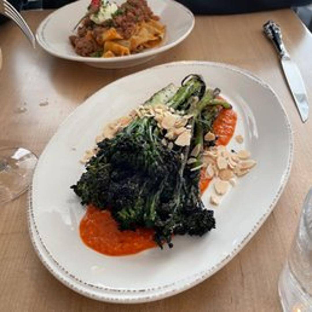 Slender and vibrant broccolini spears, known for their milder, slightly sweeter flavor than traditional broccoli. Expertly prepared to a tender-crisp texture, often roasted or sautéed with garlic and olive oil.