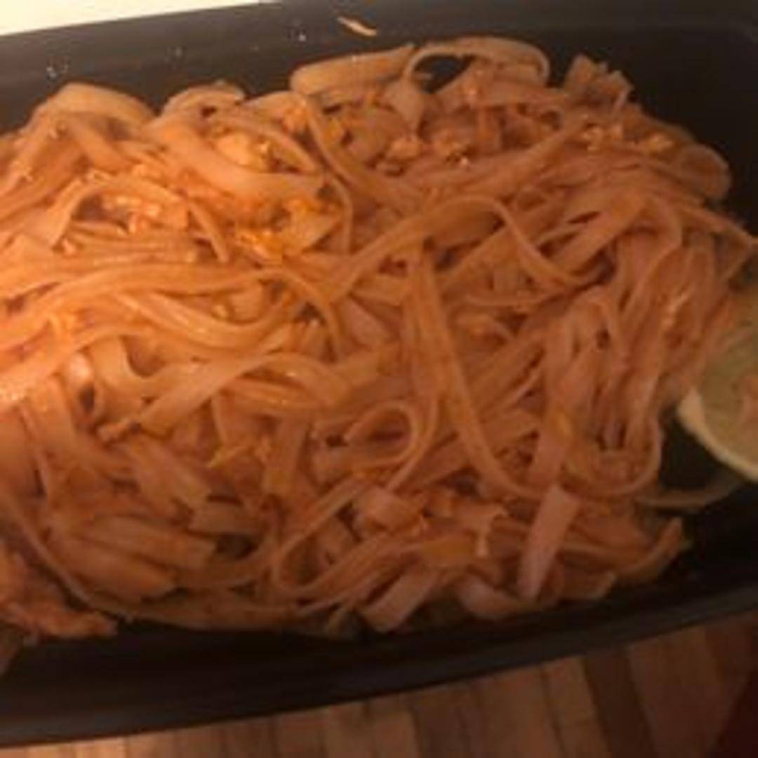 Stir-fried rice noodles with shrimp or chicken, tofu, bean sprouts, egg, and peanuts in a tangy tamarind sauce. Garnished with lime and crushed peanuts.