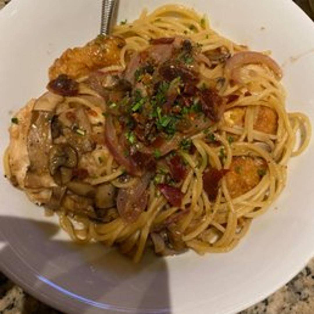 Pan-seared chicken breast in a rich Marsala wine sauce with mushrooms, served with a side of pasta or seasonal vegetables.