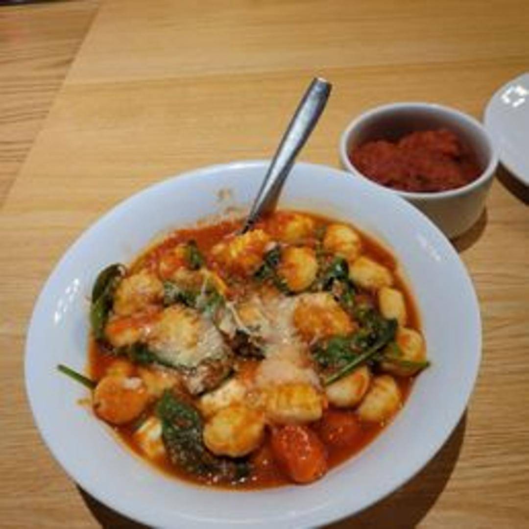 Soft potato gnocchi tossed in a creamy spinach sauce with parmesan cheese.