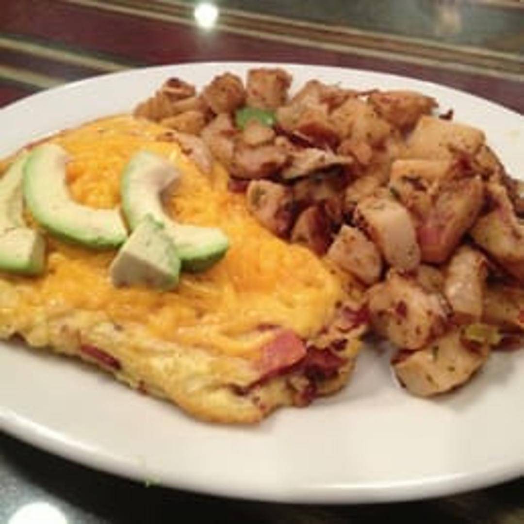A fluffy omelet filled with your choice of cheese, avocado, tomato, and sprouts. Served with your choice of toast or pancakes and a side of home fries or fruit.