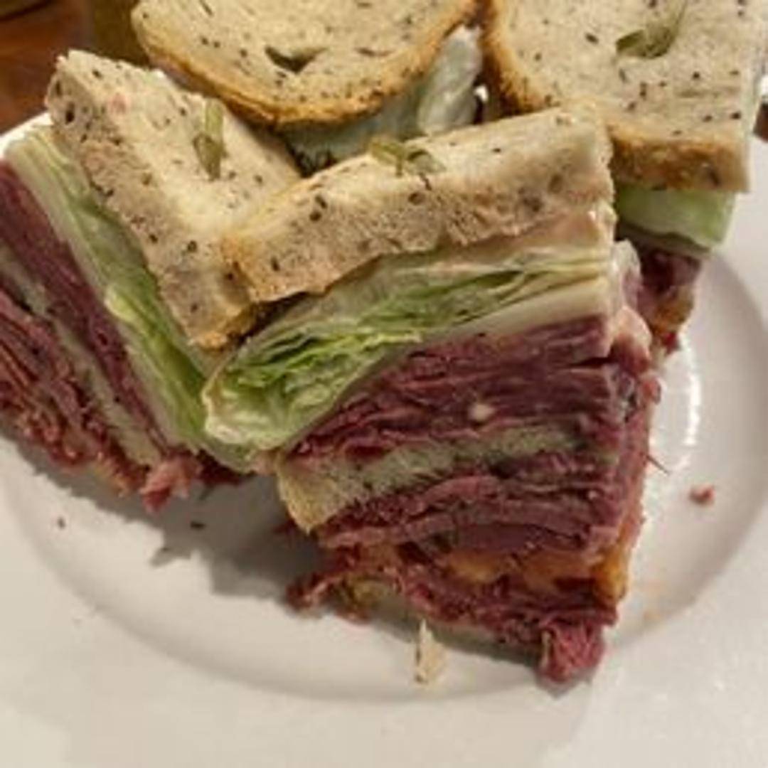 Thinly sliced, tender beef tongue, prepared and seasoned using traditional deli methods. Served on rye bread, or as part of a platter, it's a classic deli staple with a distinctive, rich flavor.
