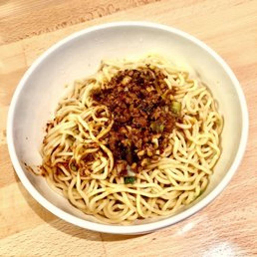 A renowned Sichuan street food delight consisting of springy wheat noodles generously coated in an intensely flavorful and spicy sauce. This iconic dish typically combines chili oil, Sichuan peppercorns, preserved vegetables, and often savory minced pork, creating a harmonious blend of spicy, nutty, and savory notes.