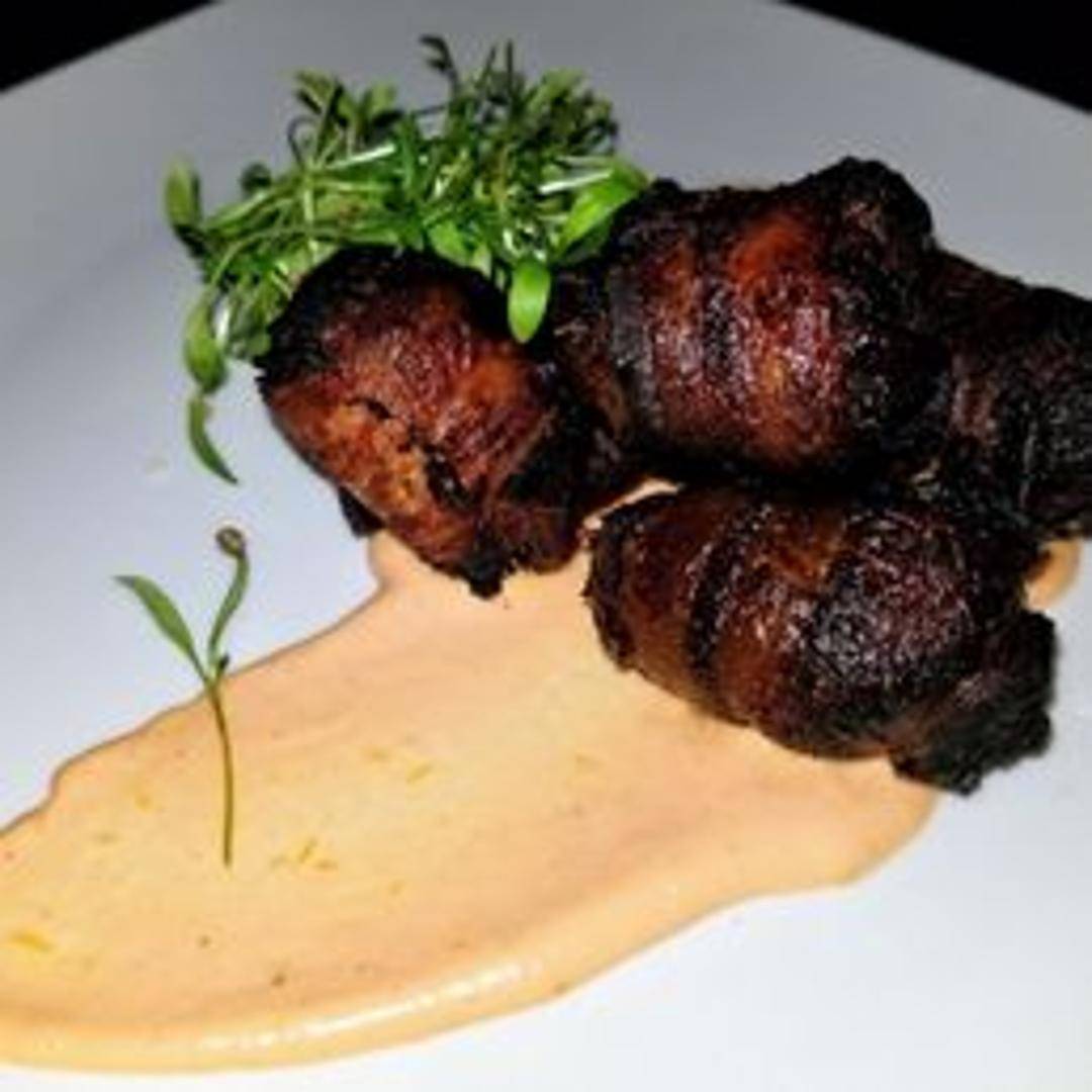 A harmonious blend of sweet and savory, our Bacon Wrapped Dates are a culinary delight. Plump, tender Medjool dates are stuffed with creamy goat cheese, then expertly wrapped in crispy, smoky applewood bacon and baked until caramelized to perfection. An irresistible appetizer.