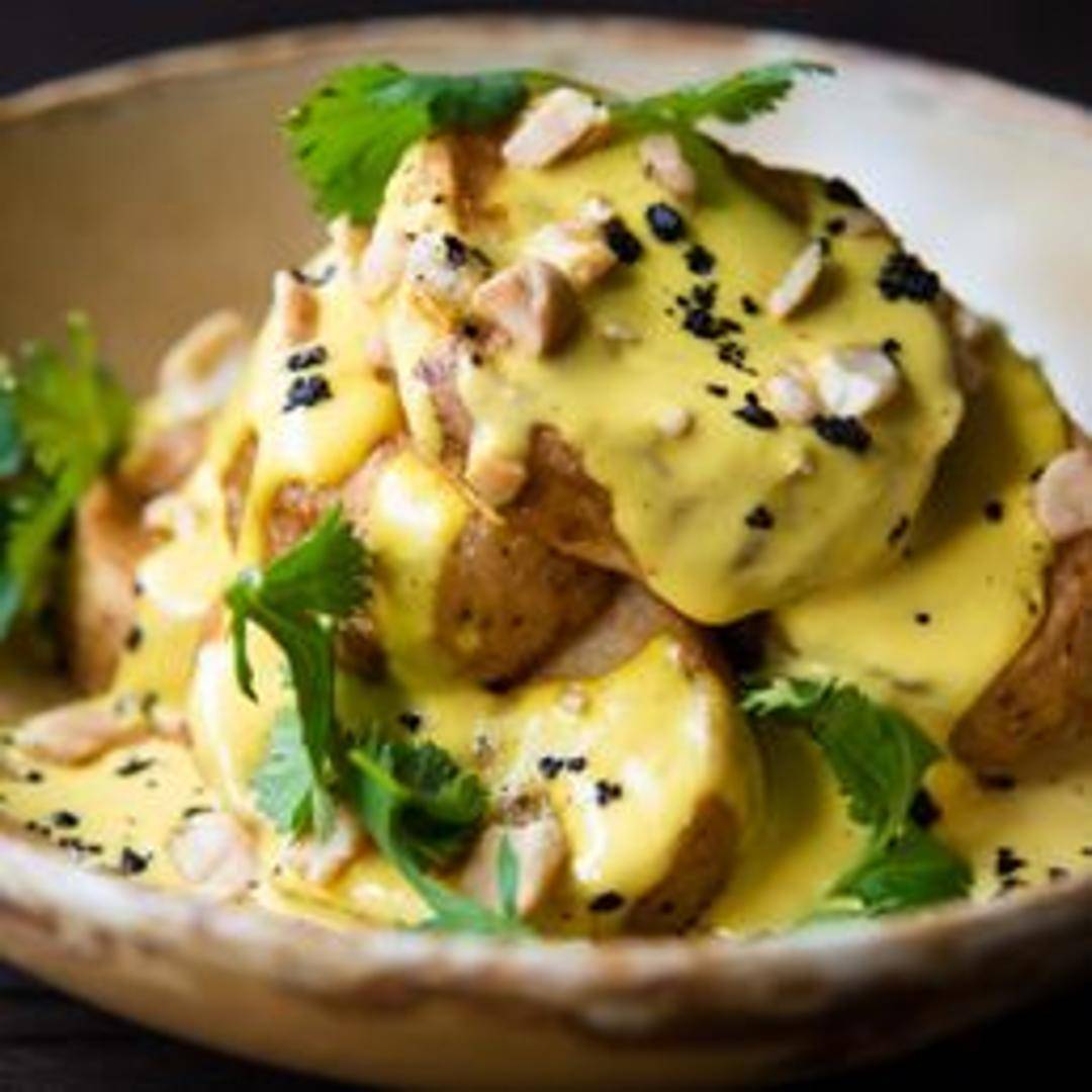 A vibrant and flavorful creation highlighting the unique essence of Aji Amarillo, the renowned Peruvian yellow chili pepper. This preparation captures its distinctive fruity aroma and gentle, warm heat, possibly presented as a creamy sauce, a lively salsa, or an integral component designed to uplift and add a bright, complex dimension to any dish.