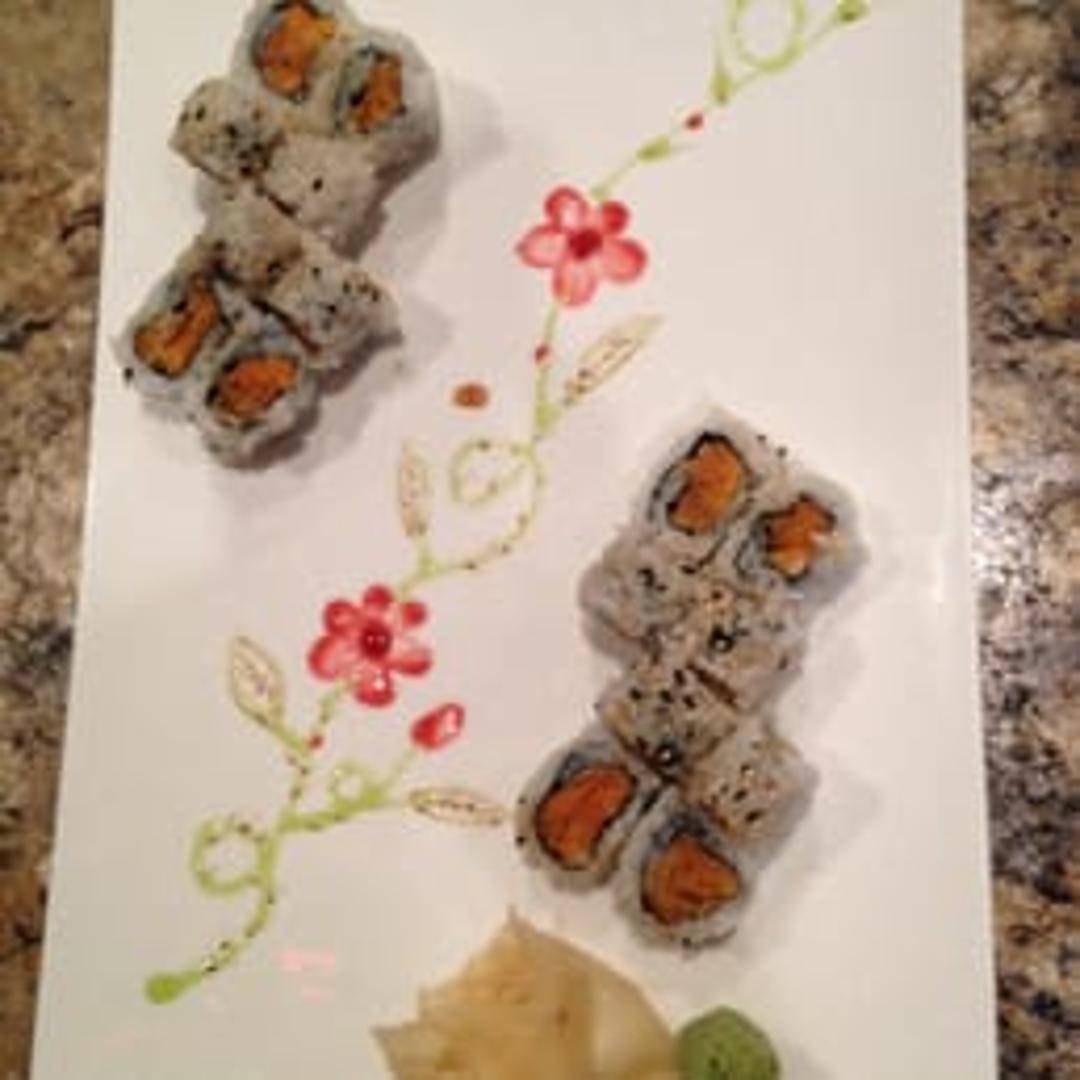 A vegetarian sushi roll featuring cooked sweet potato as the primary filling, wrapped in seasoned sushi rice and nori seaweed. Often includes a drizzle of sweet sauce or sesame seeds for added flavor and texture. Enjoy as a light and flavorful appetizer or part of a larger sushi meal.