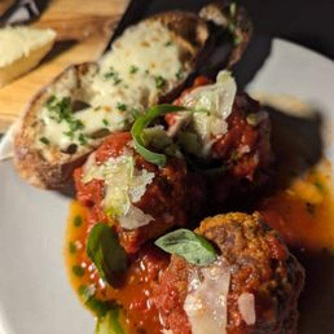 House-made meatballs simmered in a rich tomato sauce, served with a sprinkle of parmesan cheese and fresh basil. A comforting and flavorful dish.