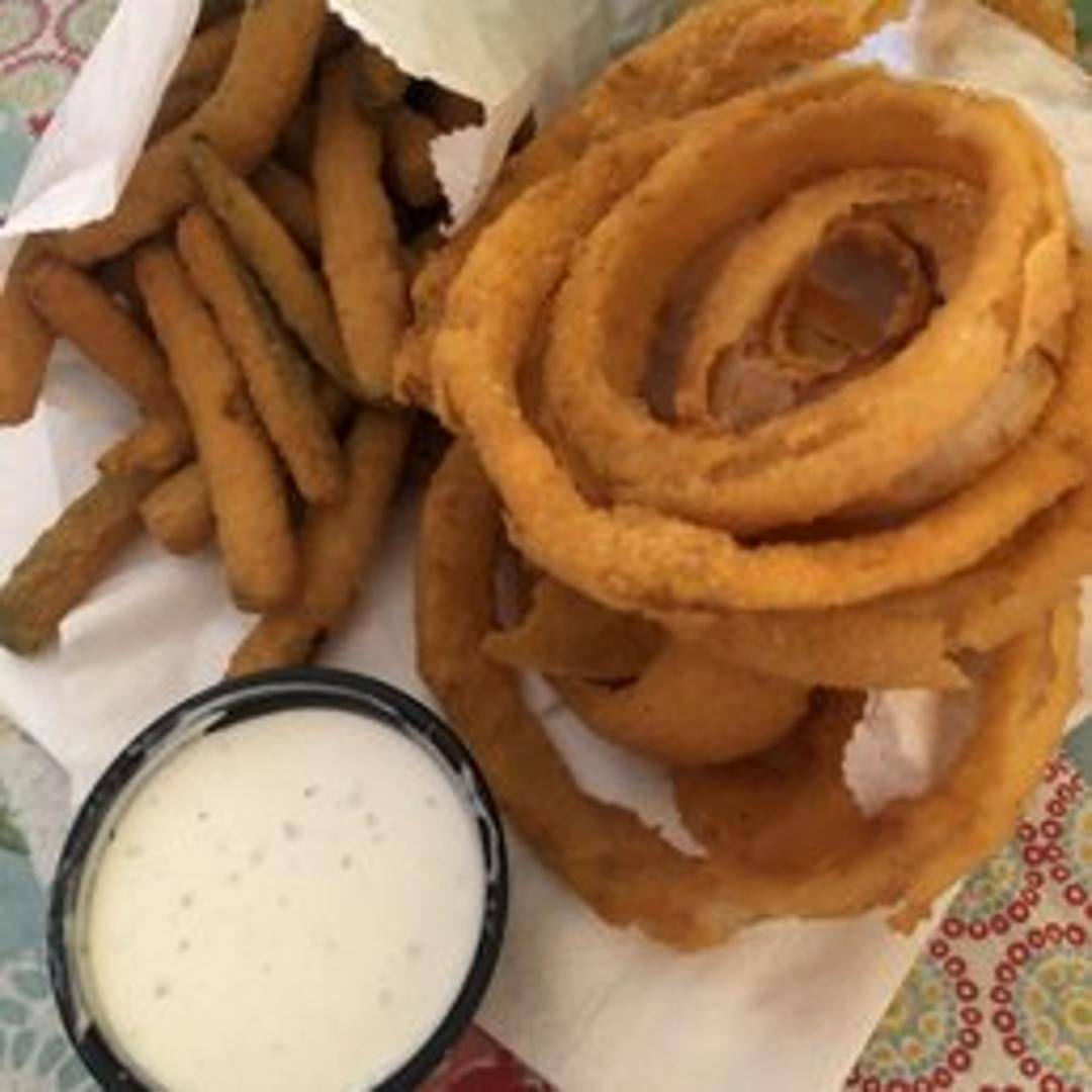 Thinly sliced zucchini, lightly battered and fried to a crispy golden brown. Served with a side of ranch dressing.