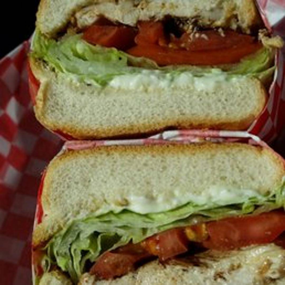 A tender and juicy grilled chicken breast, served on a toasted bun with lettuce, tomato, and your choice of condiments.