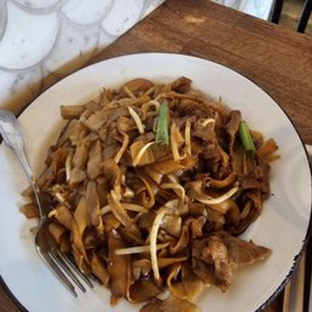 Wide rice noodles stir-fried with tender slices of beef, crisp bean sprouts, scallions, and onions in a savory soy-based sauce. A classic Cantonese dish with a balance of textures and flavors.
